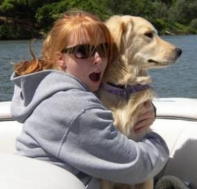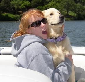 This is SUMMER (aka Violet) and Kate, on the lake. Summer's first boat ride. She's smiling, so she must like it!