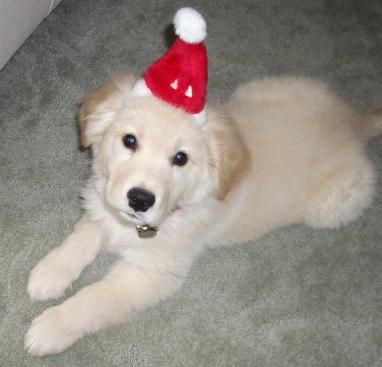 Gracie's Christmas Hat.... She doesn't look too happy about it! I guess she doesn't fully understand the "'Tis better to give than receive" gift-giving plan.... However, I hear she LOVES to give kisses!
