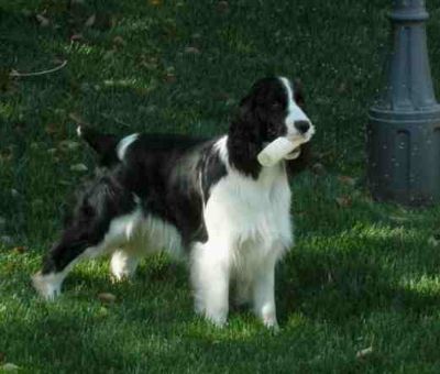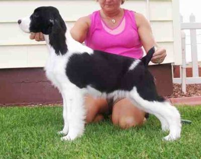 These handsome Springers are (R-L) Sunny, a liver/white girl from Maggie's litter and DJ, a black/white from Binnie's litter. They share their dad, Junior. DJ is a full brother to our Boomer and Harley. I believe Sunny is about 3 months here, and DJ would be a year old, or close to it. Click on the photo to go to DJ's litter page.