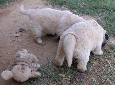 They found a toy......And a big bowl of WATER..... AND ALL THE DIRT THEY COULD HOPE FOR!