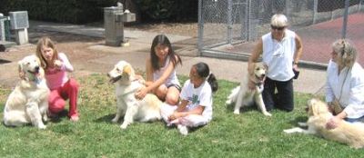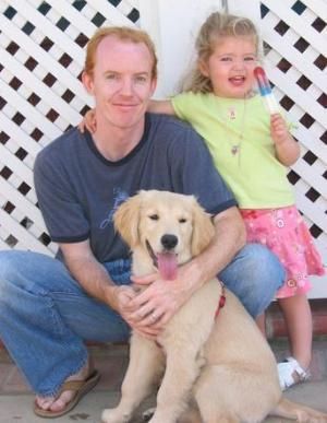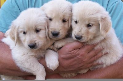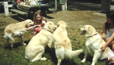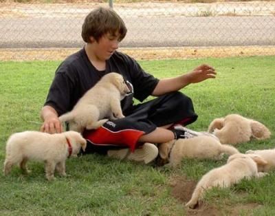 Ryan and "his Golden Gang". Ryan and his family own a Pete x Reign puppy (Sierra) and a Pete x Evie puppy (Obie). This bunch is the Pete x Reign litter. They were 5 weeks old.