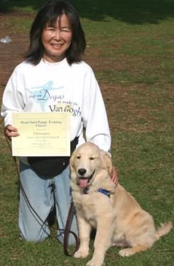 Chris and owner Mariko... Chris completed a puppy training class and "graduated". We are proud of them!