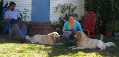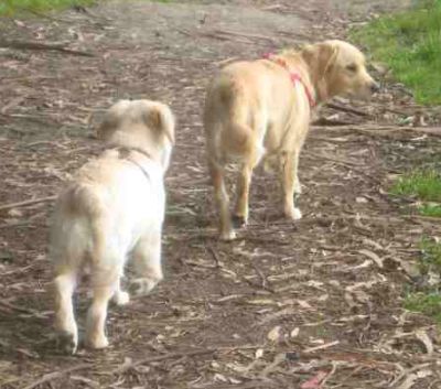 2 Brew daughters playing follow the leader. Butternut is in front, 7 months old (mom is Skittles). Little Merry is from the Angel litter and is 4 months old. These 2 lucky girls live a wonderful life with owner Chris and family in Santa Cruz!