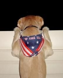 Jade, the Patriotic Pooch! Jade lives in the desert, so at 8 months old and mid-summer she has a thin coat. Don't worry, they took her WAY UP into the mountains of Utah to cool her off. See more photos on the SUMMER FUN page!