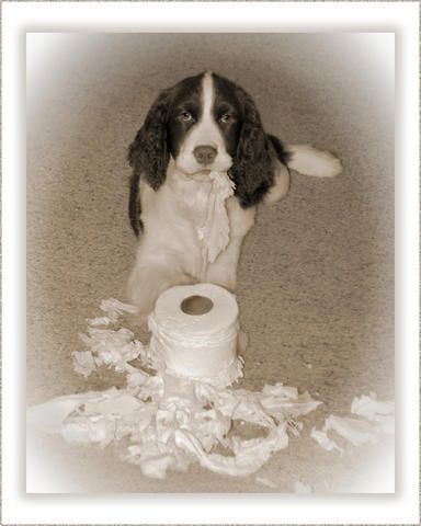 Gosh Mom, It's BETTER than eating your socks and underware, isn't it? (Chocolate a Junior/Binnie puppy)