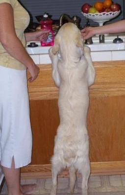 Haley, Helping with dinner.....(Merlin/Sandrene) about 4 months old.