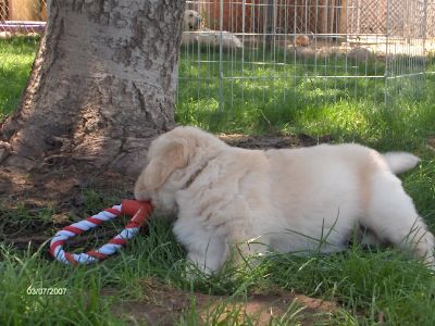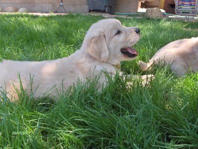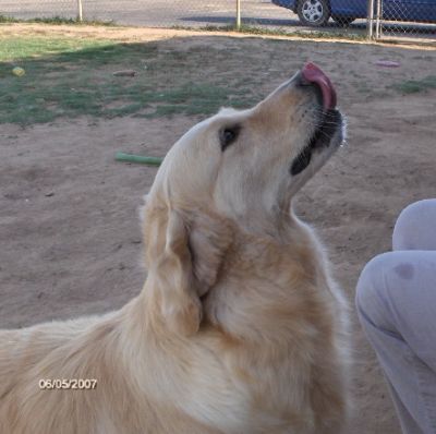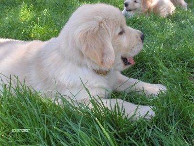 Sorda is one SWEET Golden! She's a well-structured young golden with such expressive, beautiful eyes. Very nice feathering and easy-to-care-for proper light gold coat with cream undercoat. OFA good, clear elbows, heart and eyes. Very sweet personality.