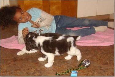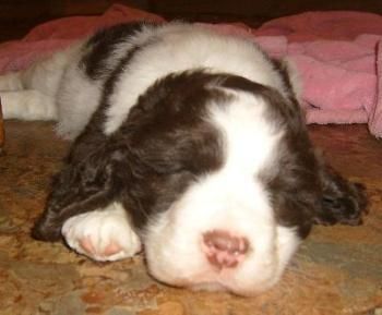 Our REPETE breeding of Binnie and Junior is HERE! After 2 years, Binnie whelped MARBLE on 12/2/07. To see pictures of our last Springer litter (also sired by Junior)CLICK HERE. To see 2 of the pups we kept from the last breeding of these 2 Springers, see "Princess Harley" and "Boomer" pages under SPRINGER SPANIELS. See more photos of Binnie by clicking her picture. This is likely to be Binnie's last litter.