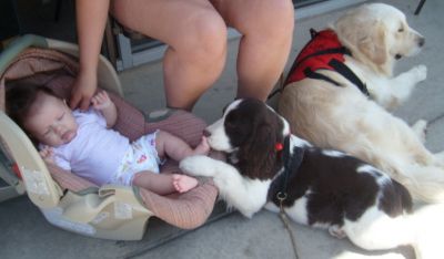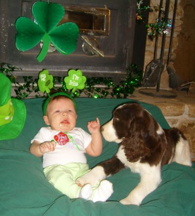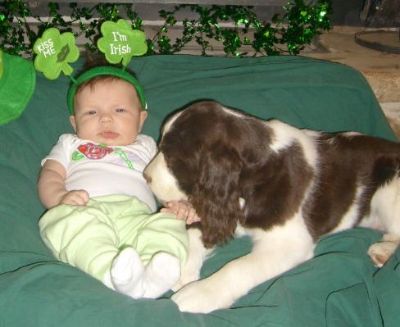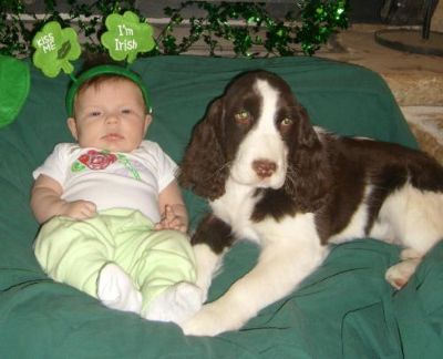 Marble is is such a little sweetie. Here he is with newest granddaughter, Julane, on St Patrick's Day (3 1/2 months old). IF you are looking for a Springer Spaniel puppy, CLICK HERE for upcoming litters.