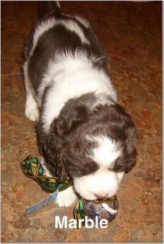 Marble is AVAILABLE to an approved home. Visit the PUPPY QUESTIONNAIRE page! He is a very sweet little boy who gets along well with other puppies and LOVES to follow me around the house. He is in puppy training and learning SIT, DOWN, STAY, COME, LEAVE IT, SETTLE, GET BACK, KENNEL, GO POTTY, DO LAUNDRY... OK, just kidding on that last one! ;-)