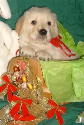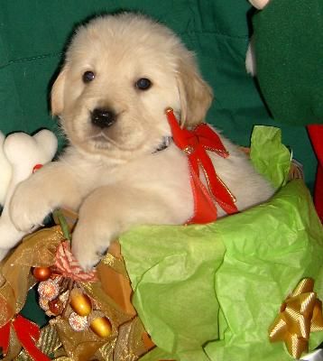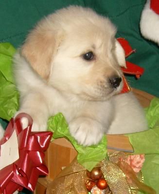 Star is wearing the yellow collar, and checking out the gift that goes under the tree.