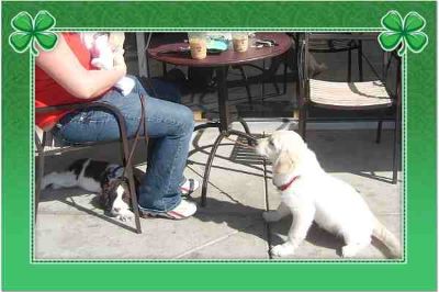 MERRY ST. PATRICK'S DAY! Merry saying "HI" during a Starbucks outing. 14 weeks old.