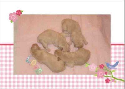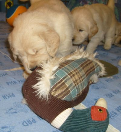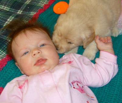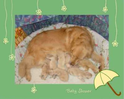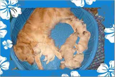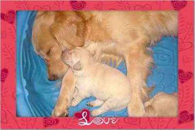This litter is light and medium gold in color. There is 1 puppy stilll available. If you are interested, please go to the PUPPY QUESTIONNAIRE page and email me a completed questionnaire. Both Faith and Brew are OFA GOOD, elbows, heart and eyes clear. Click on Faith or Brew's photo to visit their pages (new photos of Brew, 4/2/08).