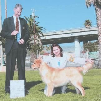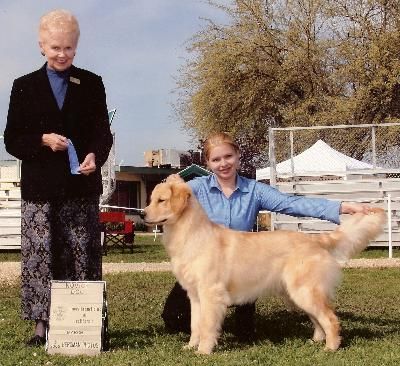 Beamer and Heather with the Judge after winning the 6-9 month puppy class 4 days in a row at Hanford, CA in March 2005.
