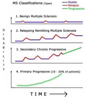 Based on the severity and the come and go pattern of the symptoms, MS is grouped into four different categories.