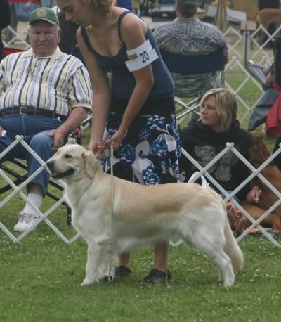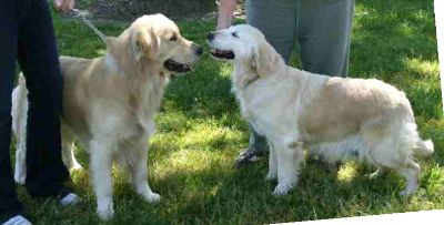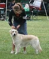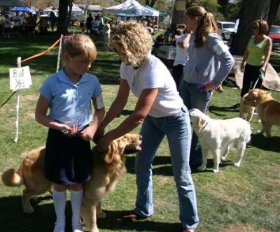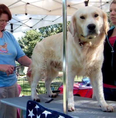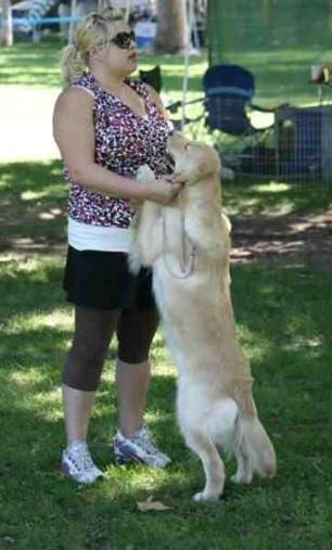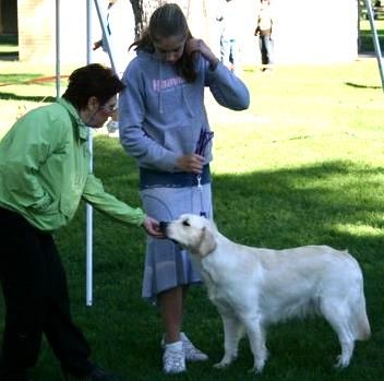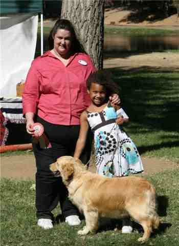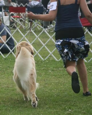 Marika and Golden Haley being judged at the UKC show in Modesto. Haley is such a sweet Golden, and is really starting to fill out nicely.