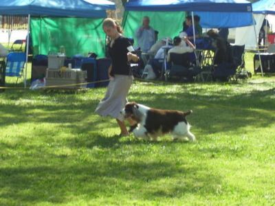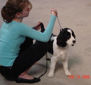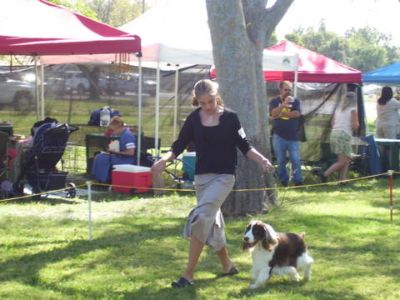 Here's Daniela and David's springer, Owen (being shown by Heather). What a great topline! Looks like a professional show dog, huh? His first dog show, Owen was beaten by Harley, but he didn't care, HE WAS HAVING FUN! I bet he slept all the way home on Sunday!
