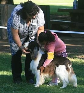 Son Jake and Mom Soda at the Modesto show. This was Soda's first ever dog show and she did very well. Haley and Brew beat her in the ring, but her happy personality never faded! Click the photo to visit Soda's page.