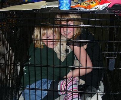 HAHAHA, I just had to add this picture! Taylor and her sister Margaret are in a crate with puppy Jake... As Jake's owner Steve says, "Some kids will do anything to play with a puppy!"