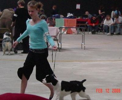 Santa Rosa 1/13-14/07. These 2 cuties are Taylor and Max (a Pete/Roxy dog). Taylor decided after watching Heather show Max, she was sure she could do it too! So, she jumped right in and showed Max in 3 of the 4 shows! Max was in the open class, and was awarded his International Champion title... WAY TO GO TAYLOR! Click on the picture to go to Max's page... see him as a puppy!