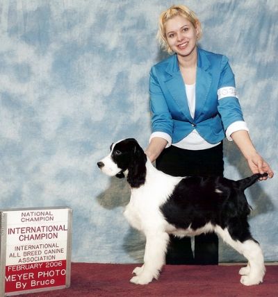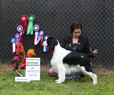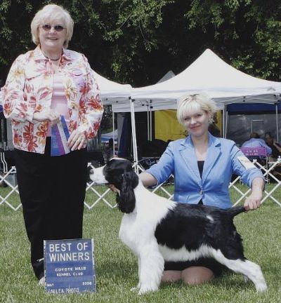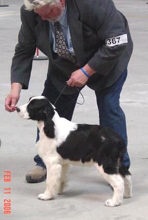 BIG BRAG-- Boomer won his first AKC point May 20th in Vallejo-- winning BEST OF WINNERS out of the 6-9 month puppy class over the older Springers!