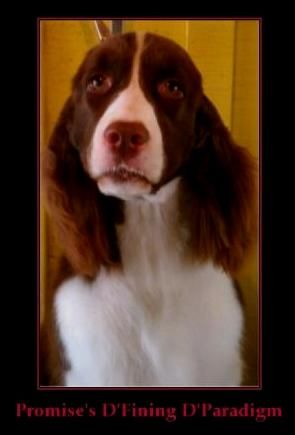 DEE DEE HAS FOUND HER FOREVER HOME!!! U-CH Dee Dee is a Liver/White sister of our newest AKC Champion Springer, Raven. Dee Dee is the daughter of BIS, BISS Ch Falcon and our Multi-Ch Maggie. She is a goofy 2 year old youngster. In training with Ronnie to learn the finer points of manners after being in the show ring. We are looking for a fun-loving home for this pretty girl.