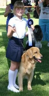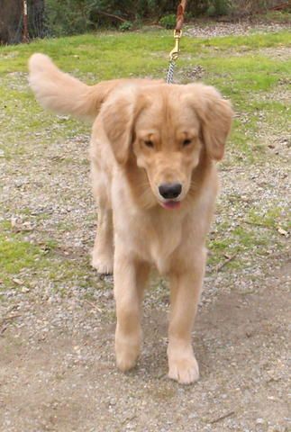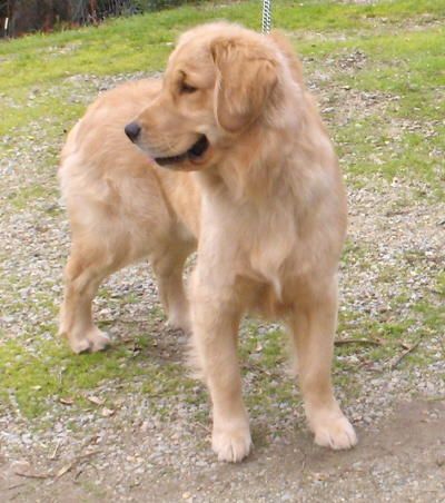 HI! My name is Max-A-Million! Max for short. I live in the coastal mountains of California, near Santa Cruz. I'm a Pete/Roxy puppy and I'm a year old in this photo. My family wants to see how I'll do in the show ring....So KEEP LOOKING! I am NOW a SHOW DOG! My *full* name is: U-CH/Int'l CH Maximillion's Golden Promise.