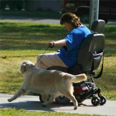 She is a happy girl and settles down quickly when given a job - even if that job is to run beside Judy's wheelchair.