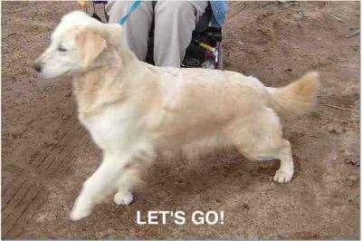 Soda at her first ever dog show, April 12-13, 2008. Soda's son Jake won BEST IN SHOW that weekend! Although she will take a maternity leave for her last litter of puppies, watch for Soda to finish her Champion title this year!