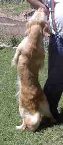 Here is Skittles, all attention focused on Ron. Skittles is OFA hips GOOD, OFA elbows, heart and thyroid normal, CERF clear. Copies of all clearances available!