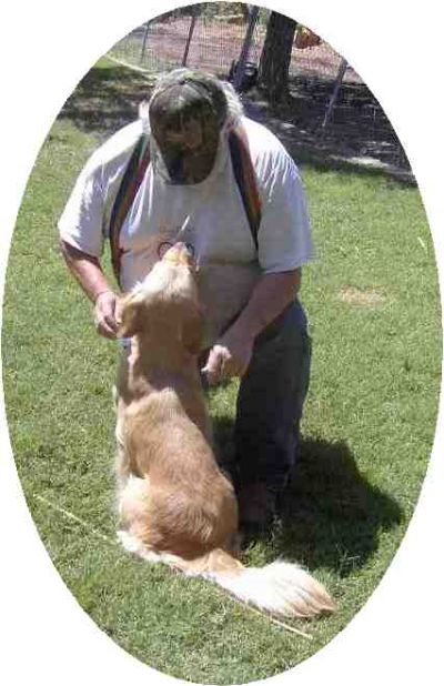 Here's a head shot of Skittles and her smile. The California Sun is shining on her, causing the top of her head to appear quite light, however it is just an optical illusion! We want to improve the health issues that Goldens are being seen with in large numbers. That is why we are investigating some with European bloodlines. We have been very happy with the clearances we have gotten back on Skittles and Angel. We will have to see if they produce offspring worthy of the showring. Always good to get peer reviews and judges opinions!