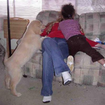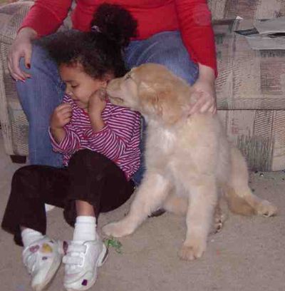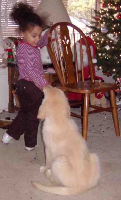 Here is a picture of our granddaughter Adrienne and Faith. Adrienne will be a good dog trainer when she grows up. Look at Faith's great "Sit"! Taken 1/1/05