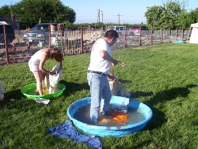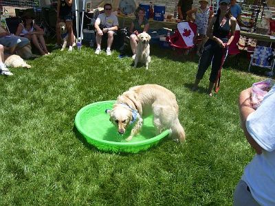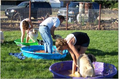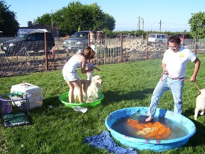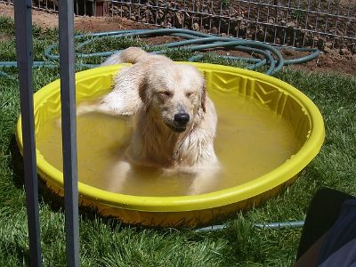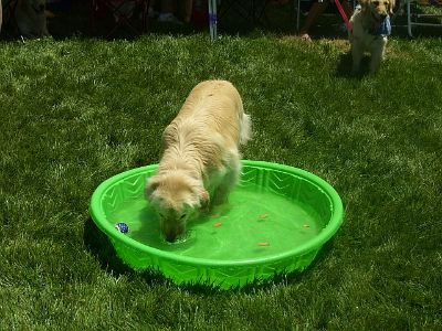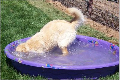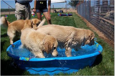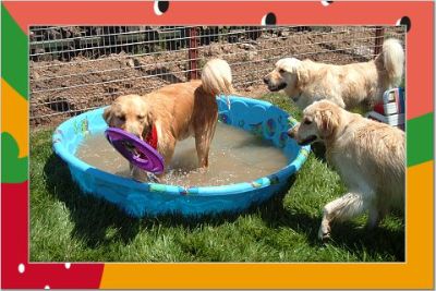Later in the day, the pool water is a little dirtier... But, the dogs are still having fun! Oliver is in the pool, I think it's Sierra and Sherman? joining in the fun.
