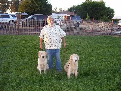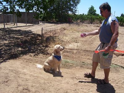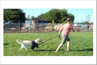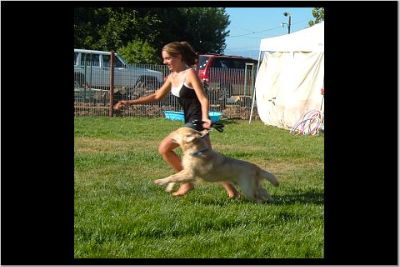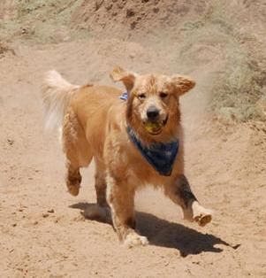 Here's the WINNER of the Tennis ball Toss 'n Cathc... BEAR, the Golden in a Pit Bull body... ;-) That's Oliver and Lightfoot in the background.