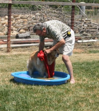 Kayla and a wet (and happy) Jake
