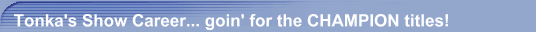 TONKA at 6 months.... getting ready for a show. My, hasn't he grown into a handsome boy! Tonka's dad, "Jesse", Am Ch Delmarva Tell'M U R Innocent finished his Championship by winning back to back 4 point majors! CONGRATS JESSE! See dad by clicking HERE.