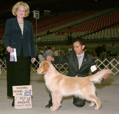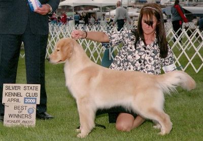 Hope in her AKC debut - the NorCal Golden Retriever Club at the Pleasanton, CA spedcialty show in Oct. '08. She placed 3rd!