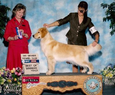 EXCITING NEWS! HOPE WINS THE POINTS MAY 8TH at the RIO GRANDE VALLEY GOLDEN RETRIEVER SPECIALTY! PLUS HOPE IS OUR NEWEST AKC CHAMPION! She is also the #6 Golden Retriever in the UKC system's TOP 10. (Aug. 09)
