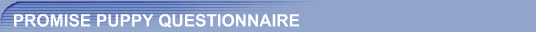 Planning for a new puppy is exciting! One of the first steps in acquiring a PROMISE puppy is filling out the Puppy Questionnaire. Because we strongly feel that each and every puppy that we bring into this world is partly our responsibility, we try to make sure that potential Puppy Families are READY, WILLING and ABLE to take care of their new family member for the next 13-15 years. PLEASE read the "WANT A PUPPY" page in addition to filling out this questionnaire!