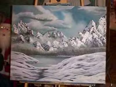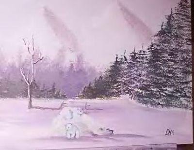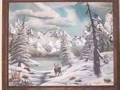 I painted this for my parents for Christmas, 2002. Believe it or not, I HAD started out with a mountain/beach picture in my head, but when the mountains turned out the way they did, I thought a snow pic would be better - and that's the type of painting they asked for, so it worked out really well!