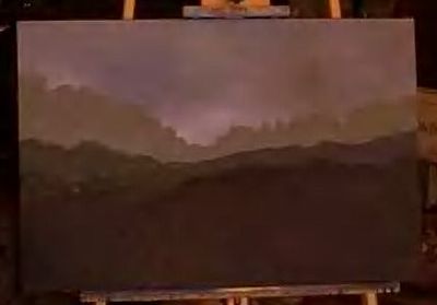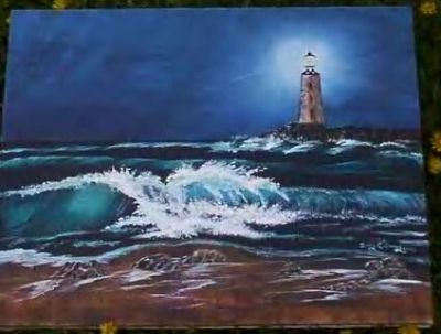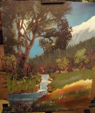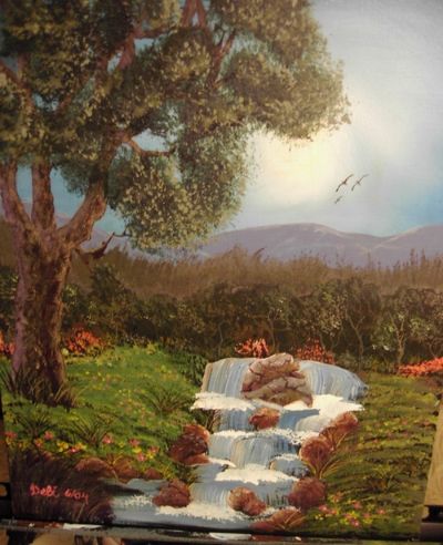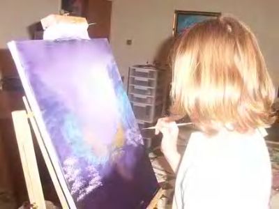 Least you think I only paint, I want to brag about my niece, Debi. I have taught her since July, 2001. This is Debi painting her very first painting, which is an oil.
