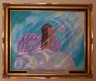 This is my first acrylic painting (these are ALL acrylics). It is a representation of one of my daughters as a little girl angel. There are silver and gold light beams around and towards her as she reached toward her Joy, Jesus. I'm much better with animals, but I figured I should just jump right in with both feet, and see if I could paint the picture in my head.