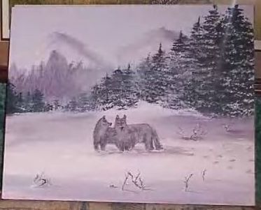 Debi painted this for another girlfriend. She did all the research on wolves and polar bears before she started.