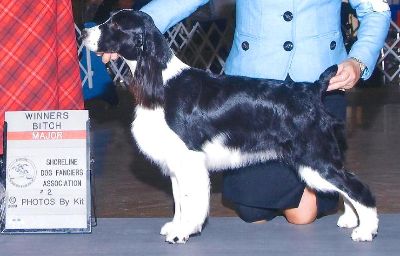 Sarah's First MAJOR!! As of December 2009 she has 6 of 15 points so far and has won a BEST IN SWEEPSTAKES at a Sporting Dog Specialty show in Texas. Photo will be uploaded when it is received. Sarah is a Falcon daughter (who won a group 2 at Eukanuba in December!)