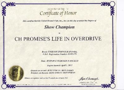 Zoomy's UKC Champion title certificate.